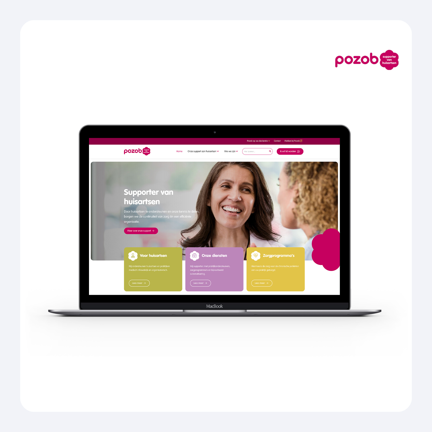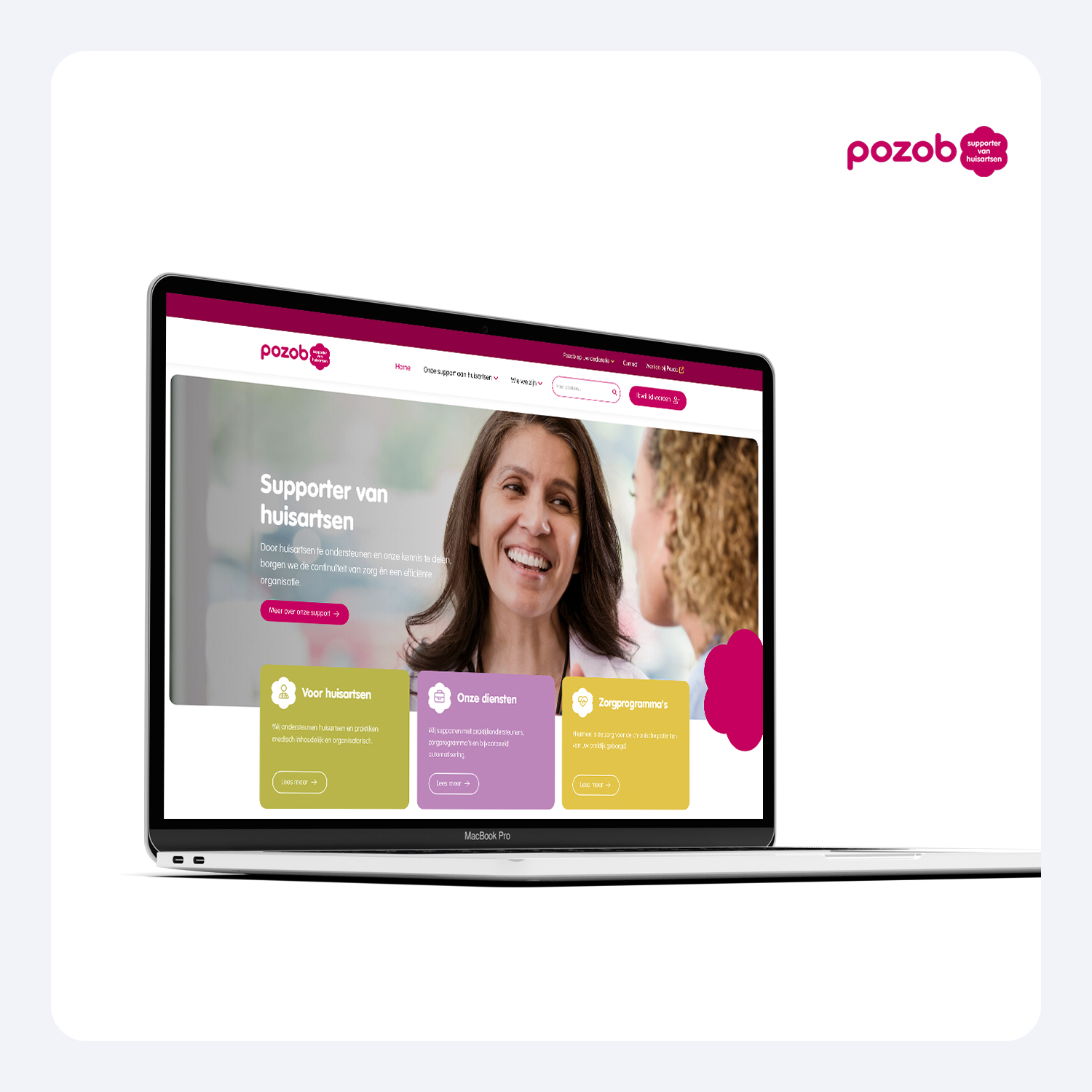 Pozob is aan de slag gegaan met het ontwerpen en vaststellen van een nieuwe huisstijl, die wij doorvertaald hebben naar de website. De oorspronkelijke website sloot onvoldoende aan op de doelgroep en converteerde niet. Het doel van de vernieuwde website is de conversies verhogen: het aantal meldingen en contactaanvragen vanuit nieuwe huisartsenpraktijken. Ook zetten we met de nieuwe site een sterke online merkidentiteit neer, en verbeteren we de vindbaarheid van Pozob. We hebben onder andere de focus gelegd op de lay-out van belangrijke pagina’s, zoals die met patiënteninformatie bij een declaratie. Ook verwijzen we met de website eenvoudig en snel door naar externe websites, zoals WerkenbijPozob.nl en Pozobnet.nl.